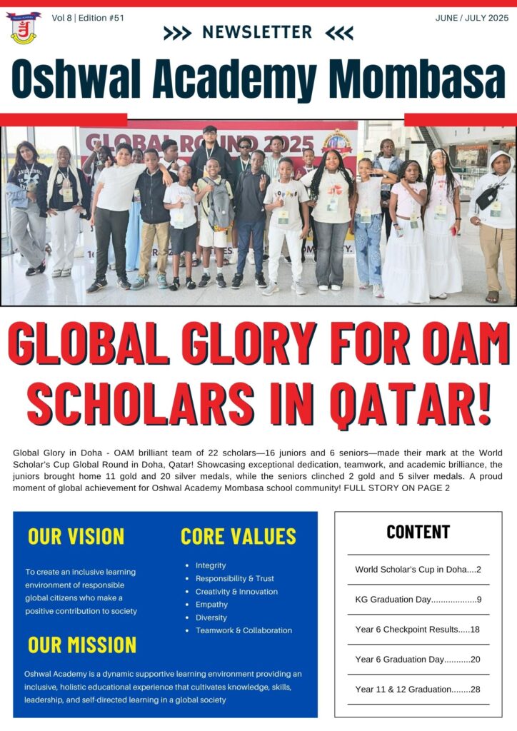 Global Glory in Doha, Qatar – Oshwal Academy Mombasa brilliant team of 22 scholars—16 juniors and 6 seniors—made their mark at the World Scholar’s Cup Global Round in Doha, Qatar! Showcasing exceptional dedication, teamwork, and academic brilliance.